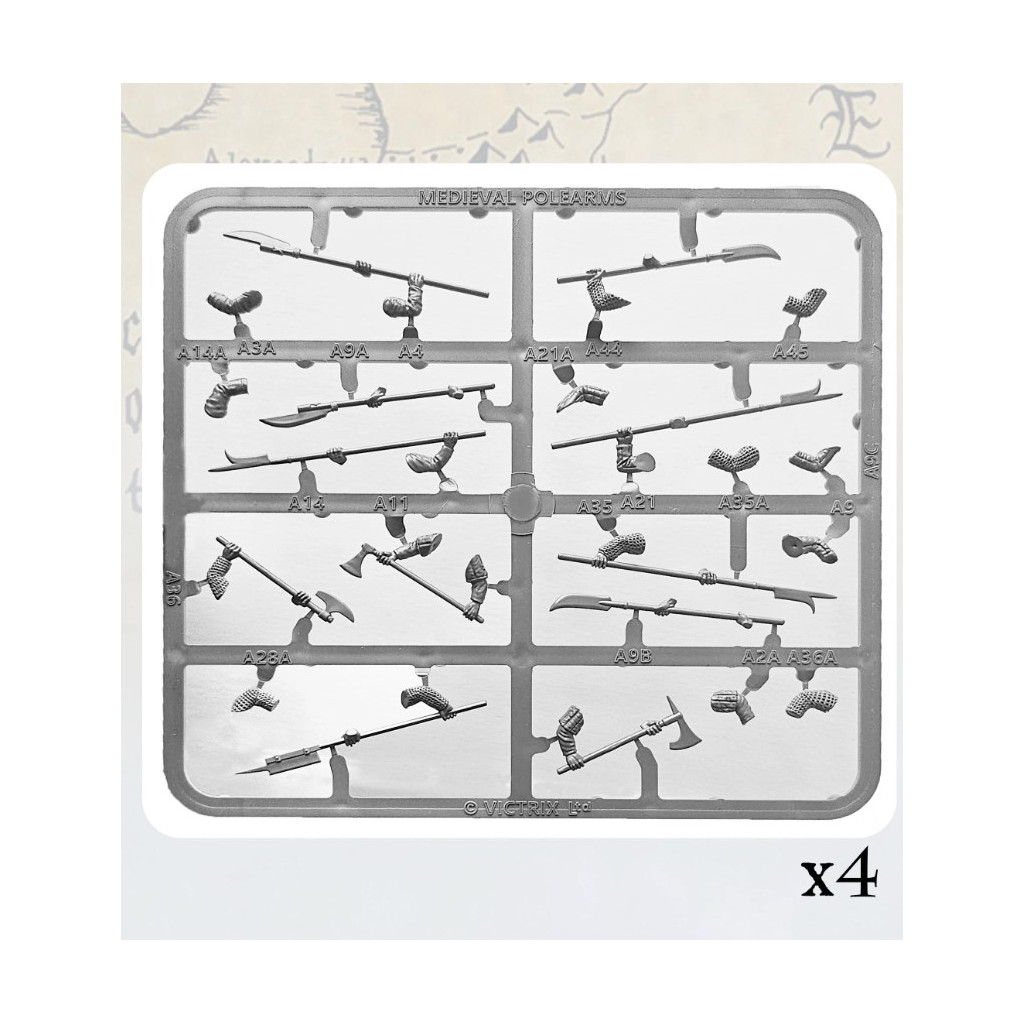 You will be able to freely mix parts from this set with the Victrix Foot and mounted Medieval Knights creating yet more variety in your armies and retinues.