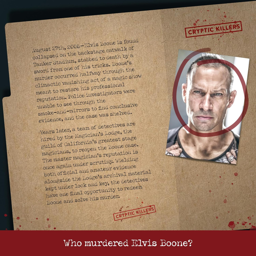 Murder of a Magician - Legendary magician Elvis Boone is back for one last show before retiring. However, during the grand finale, Elvis vanishes but never reappears. His body is found backstage, with a blood covered sword from a previous trick lying next to him. Boone had no shortage of enemies, from rival magicians to disgruntled employees, but with seemingly no way for the killer to escape, it's as if they performed their own vanishing trick.