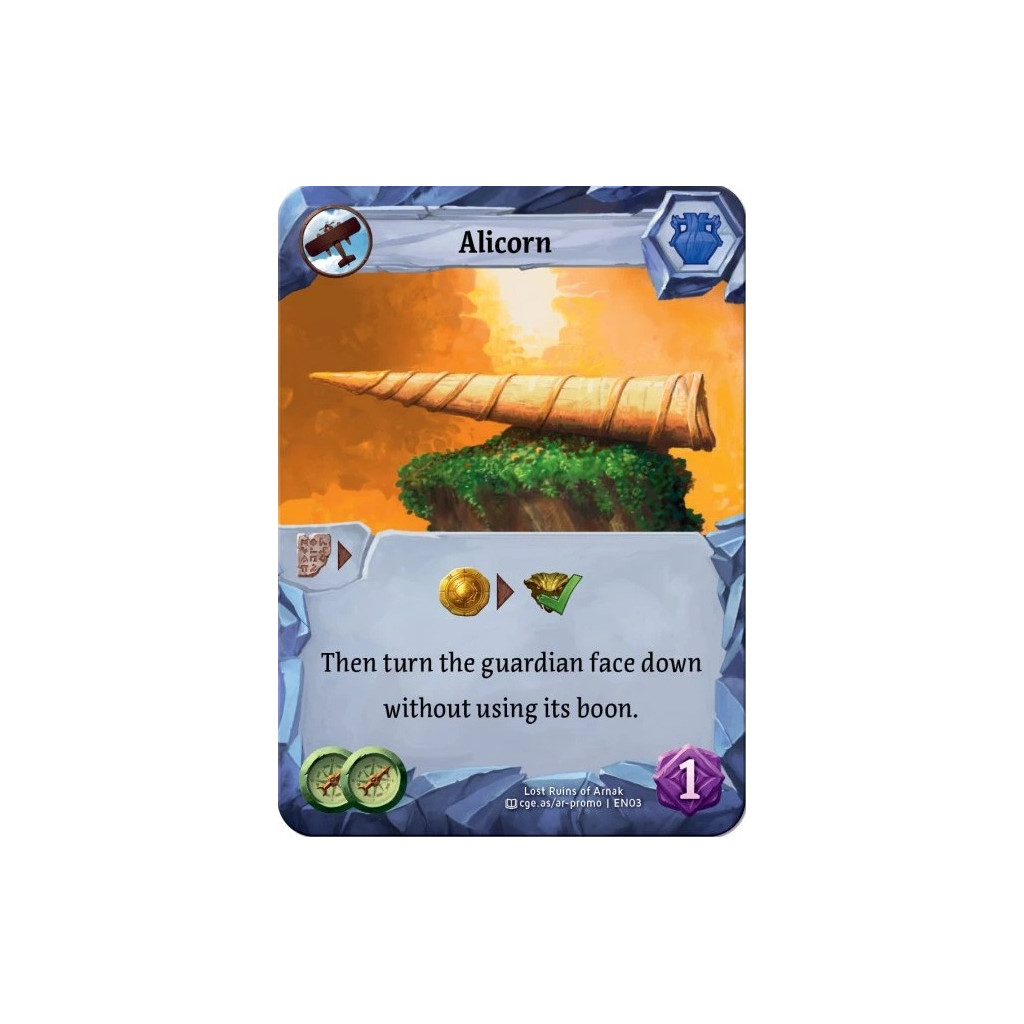 A promotional card originally available at SPIEL 2021. Text on the card: Pay one gold to defeat a guard, then flip the guard face down without using its ability.