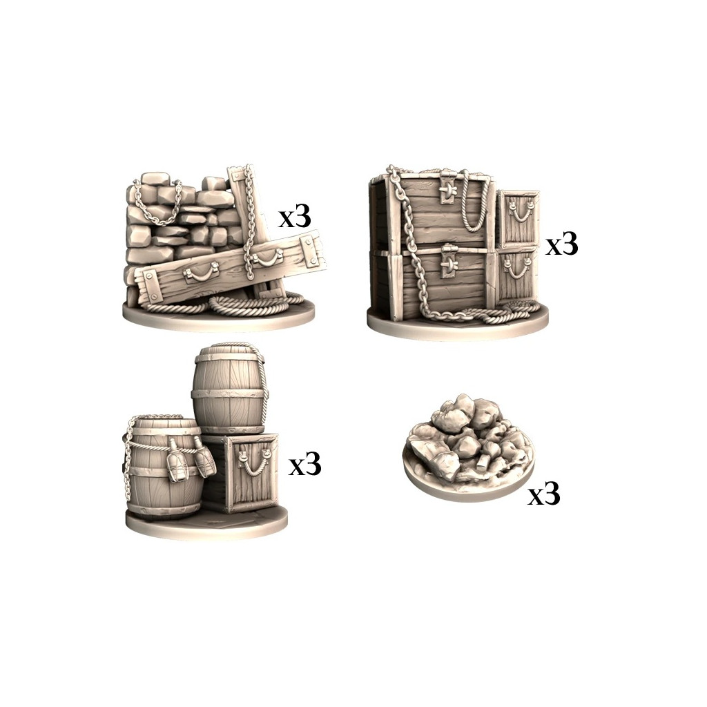 Ancient Blood: The Order of Vampire Hunters - 3D Tokens contains 12 plastic 3D scenery pieces for Ancient Blood.