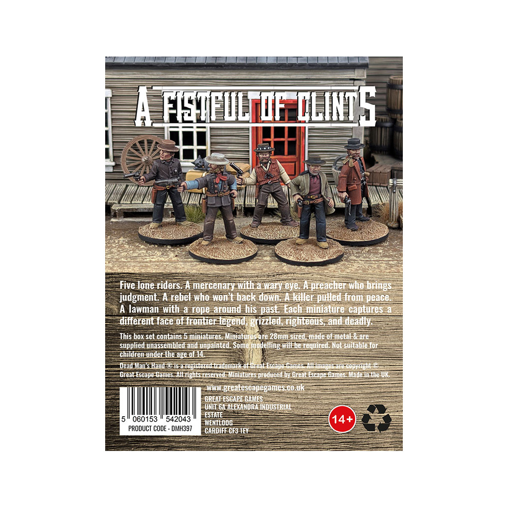 This box set contains 5 miniatures and rules cards for use in games of Dead Man's Hand.