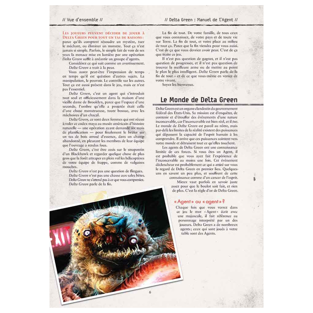 The Agent's Handbook presents a clear set of rules that will bring back memories for fans of the old Delta Green without being an exact copy, even though it still uses D 100 and is based on characteristics/skills. It covers everything related to players: character creation, action resolution, mental health management, combat, equipment from the simplest to the most deadly, and how to obtain it through the American bureaucracy.