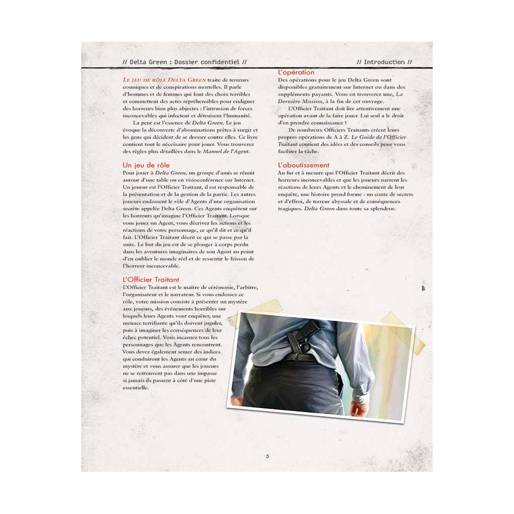 Dossier Confidentiel features a four-panel landscape screen, accompanied by a 48-page booklet containing the essential rules and a short scenario in which agents are tasked with cleaning the apartment of a colleague who has just died.