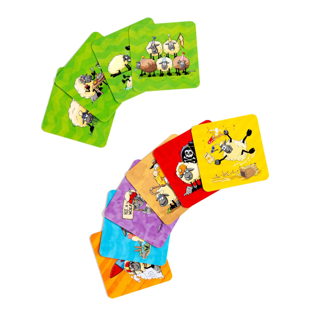 In this take-that card game designed for 2-6 players, the objective is to capture as many sheep as possible before your rivals do. During each turn, players move from one card to an adjacent one and collect it, gradually shrinking the playing field and reducing opportunities to outmaneuver opponents. Players can also use special action cards to leap over cards, traverse from one side of the field to the other, or block an opponent's move. The game concludes when only one player remains in the meadow. Can you strategically think ahead and predict your opponents' moves?