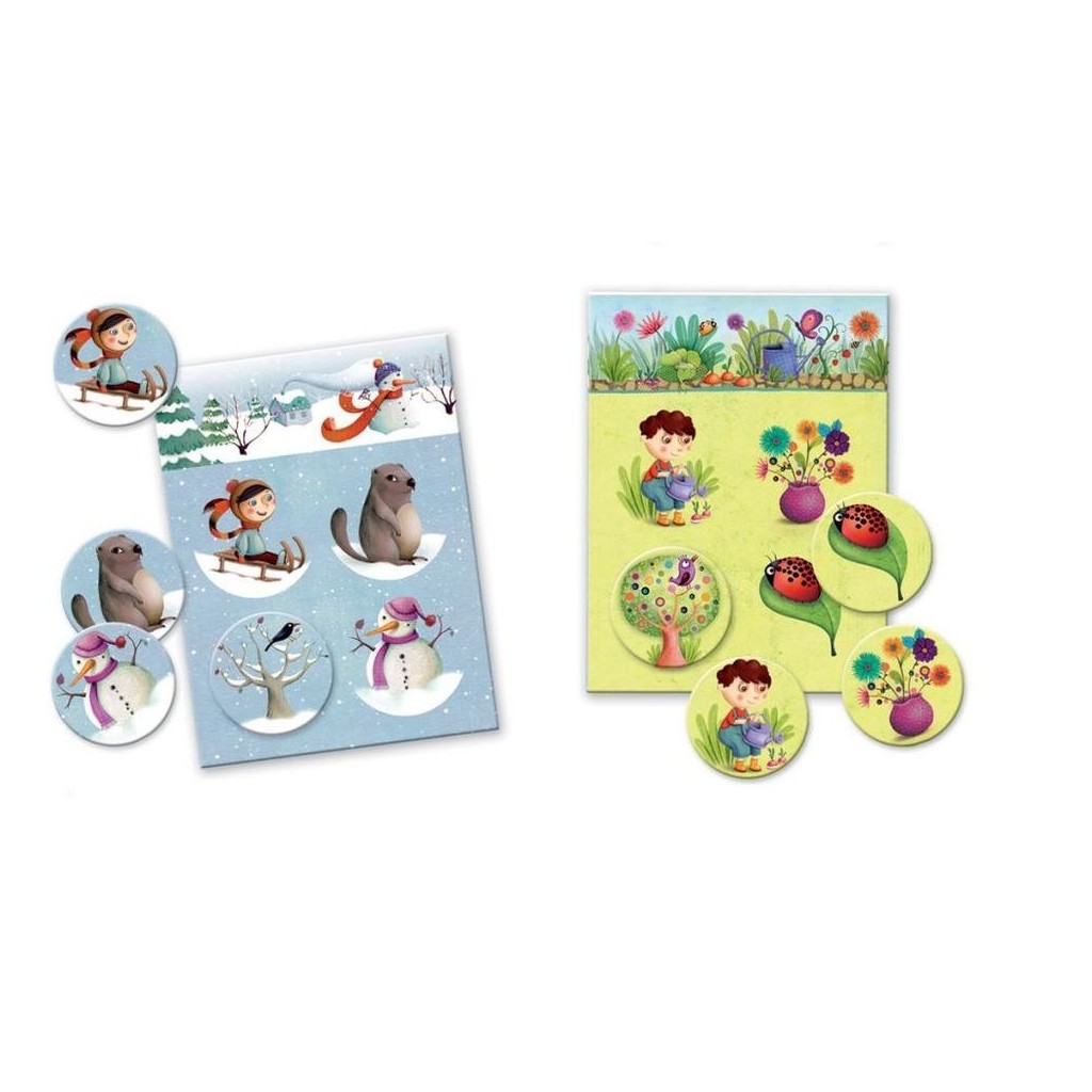 A game of association, images and language about seasons. The tiles are placed upside down in the middle of the table and each player receives a game board. The first player turns over a card. If it matches the board, he places it on top, otherwise he puts it back in the middle. The first player to fill his board wins the game.Copyright © 2026 www.philibertnet.com Legals - Privacy Policy - Cookie Preferences - Sitemap