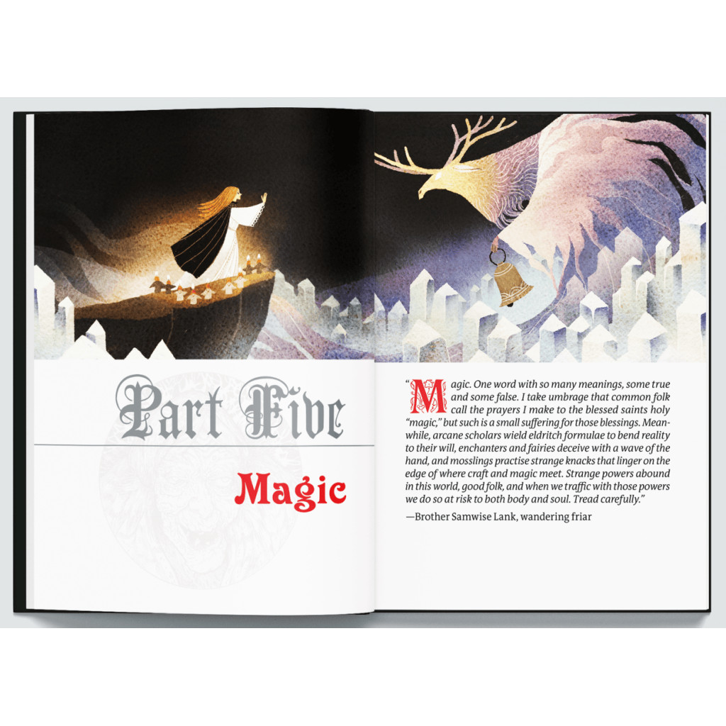 - 4 kinds of magic: mighty arcane workings, fairy glamours and runes, holy prayers to the saints, and the odd knacks of mosslings.
