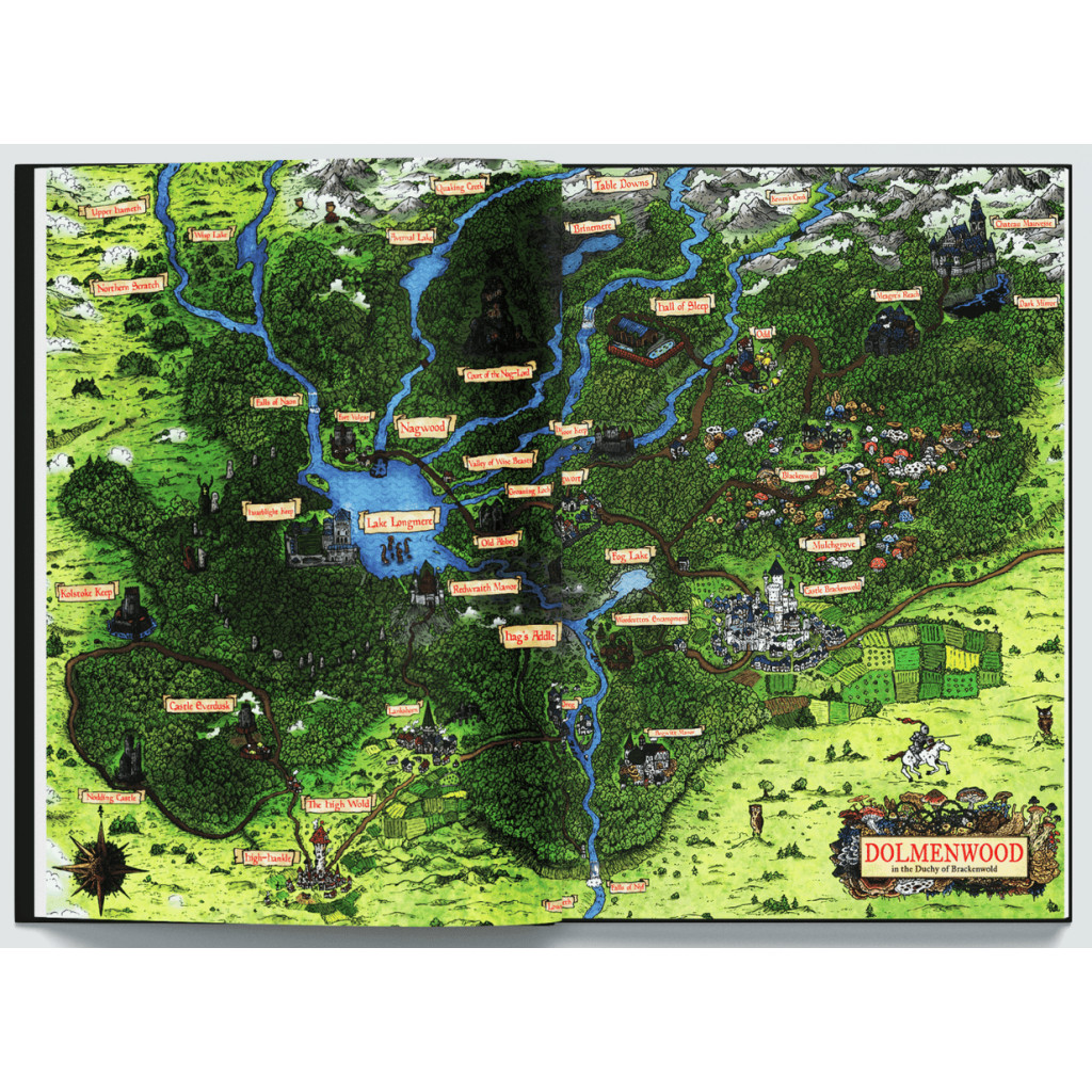The complete player’s guide to the beguiling realm of Dolmenwood—a moss-clad forest on the borders of Fairy, rife with intrigue, secrets, and magic. Step then, bold and foolhardy adventurer, into the tangled Wood and beware, for little here is as it seems.