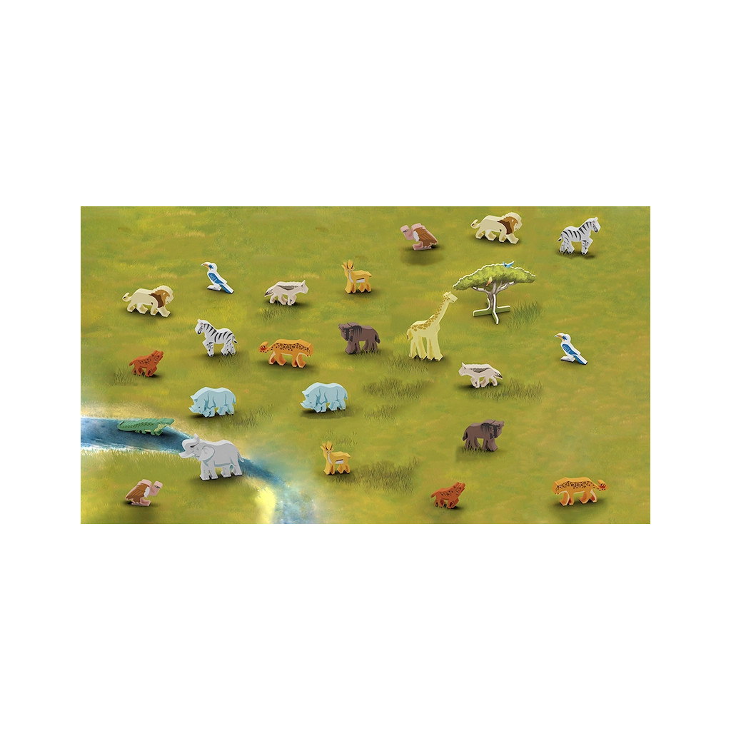 WILD: Serengeti is a board game inspired by the endless plains of the Serengeti. This game combines the joy of puzzle-solving with elements of set-collection and engine-building to create a deep and unique strategic experience. The mesmerizing artwork, 3D components and detailed animeeples will guide you straight into the vivid and breathtaking wilds of the Serengeti.