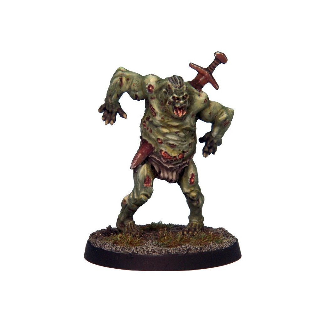 This model represents a greater zombie, a huge, bloated animated corpse of a slain human, unarmed and ready to attack with bare hands. This foul creatures is unarmoured, apart from remnants of decaying clothing, and he carries an ancient broadsword, embedded in his putrid flesh!