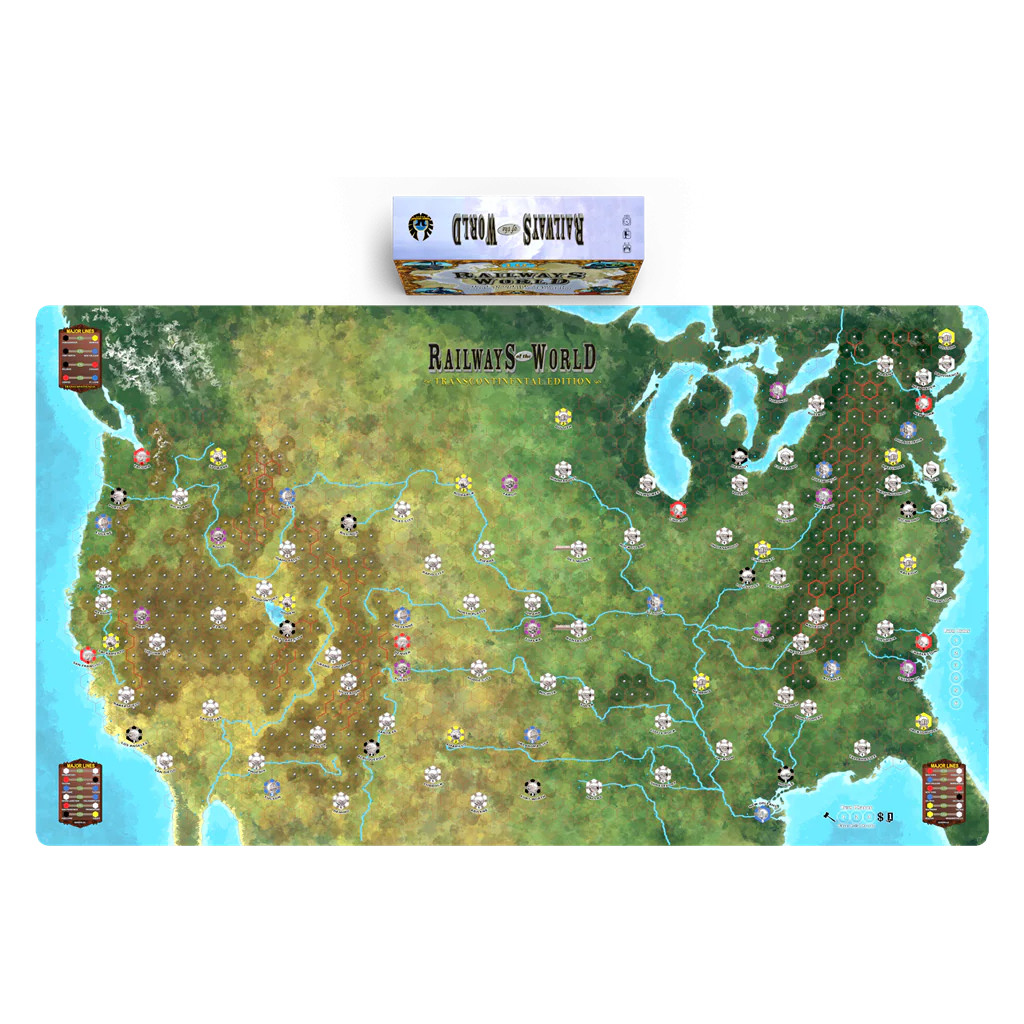 67" by 38" neoprene mat of the combined map for Railways of the Eastern and Western U.S.