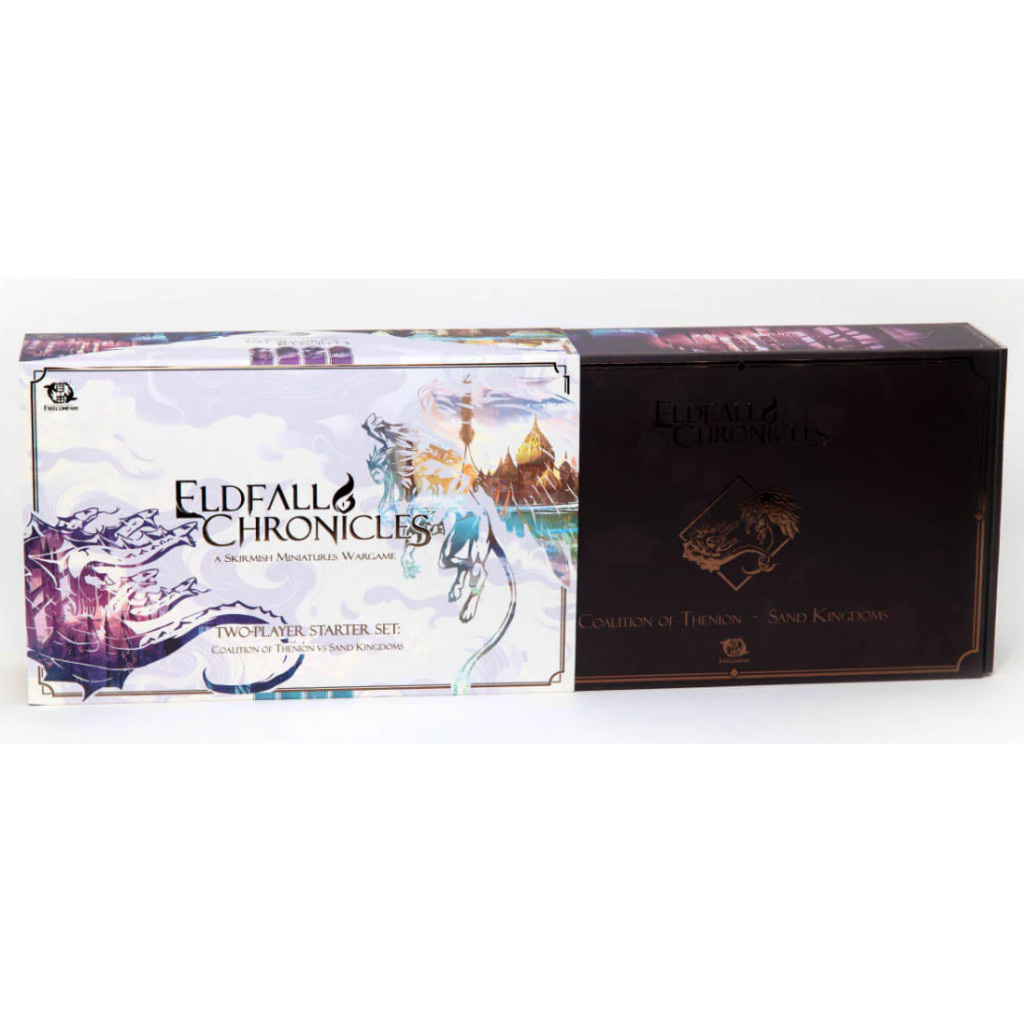 Despite an age of peace and prosperity, skirmishes among factions are not uncommon. While some strive for power, the more resourceful ones fight for ancient secrets. Among these, two reign supreme—the wise and prosperous Sand Kingdoms and the untamed and cunning Coalition of Thenion. Choose your allegiance and conquer the mysteries of the ancient world. This two-faction starter set is an ideal entry point into the Eldfall Chronicles skirmish wargame.
