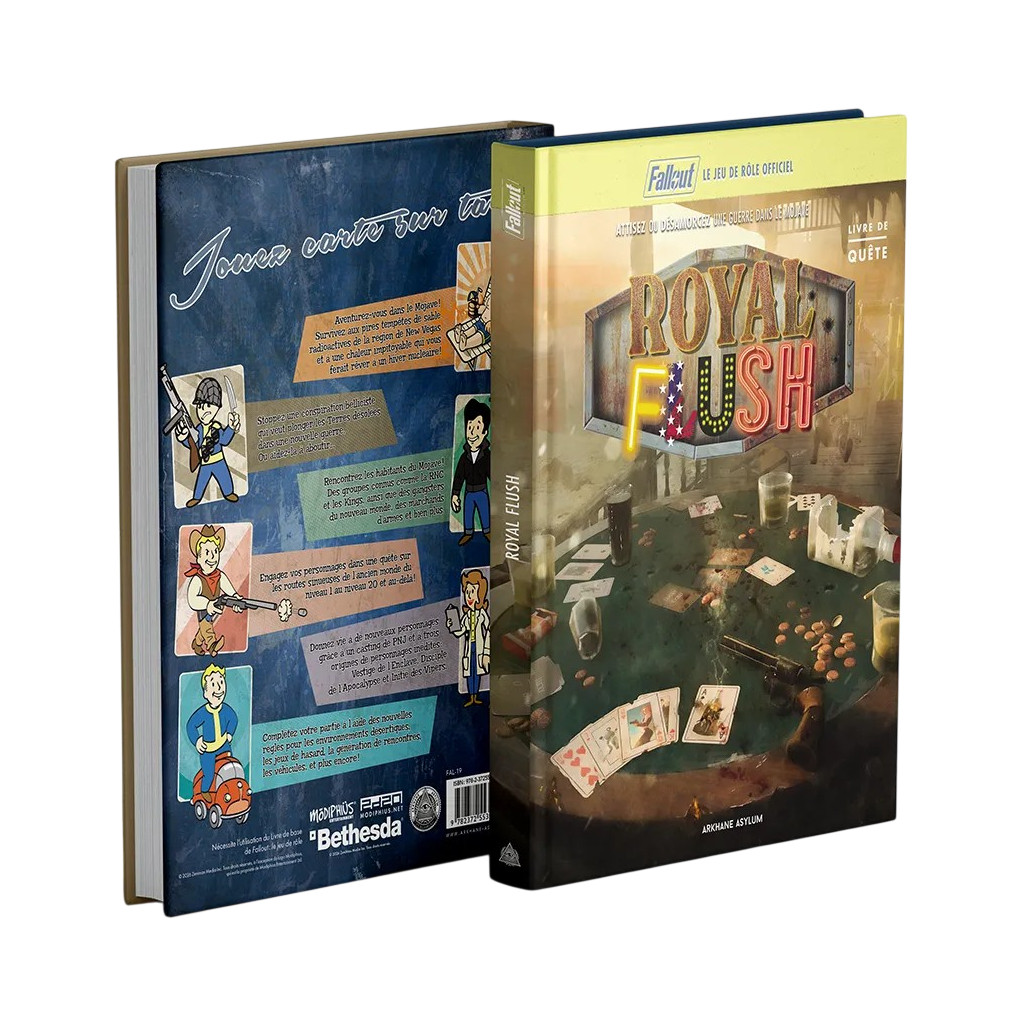 Royal Flush is a road trip down to the Sierras and the Mojave, amid the turmoil engulfing the NCR in the run-up to the Second Battle of Hoover Dam. Against the looming threat of war, the Player Characters stumble into a plot to escalate regional tensions, become embroiled in conflicts between gangs and settlements, and have the chance to visit the famous New Reno and New Vegas.