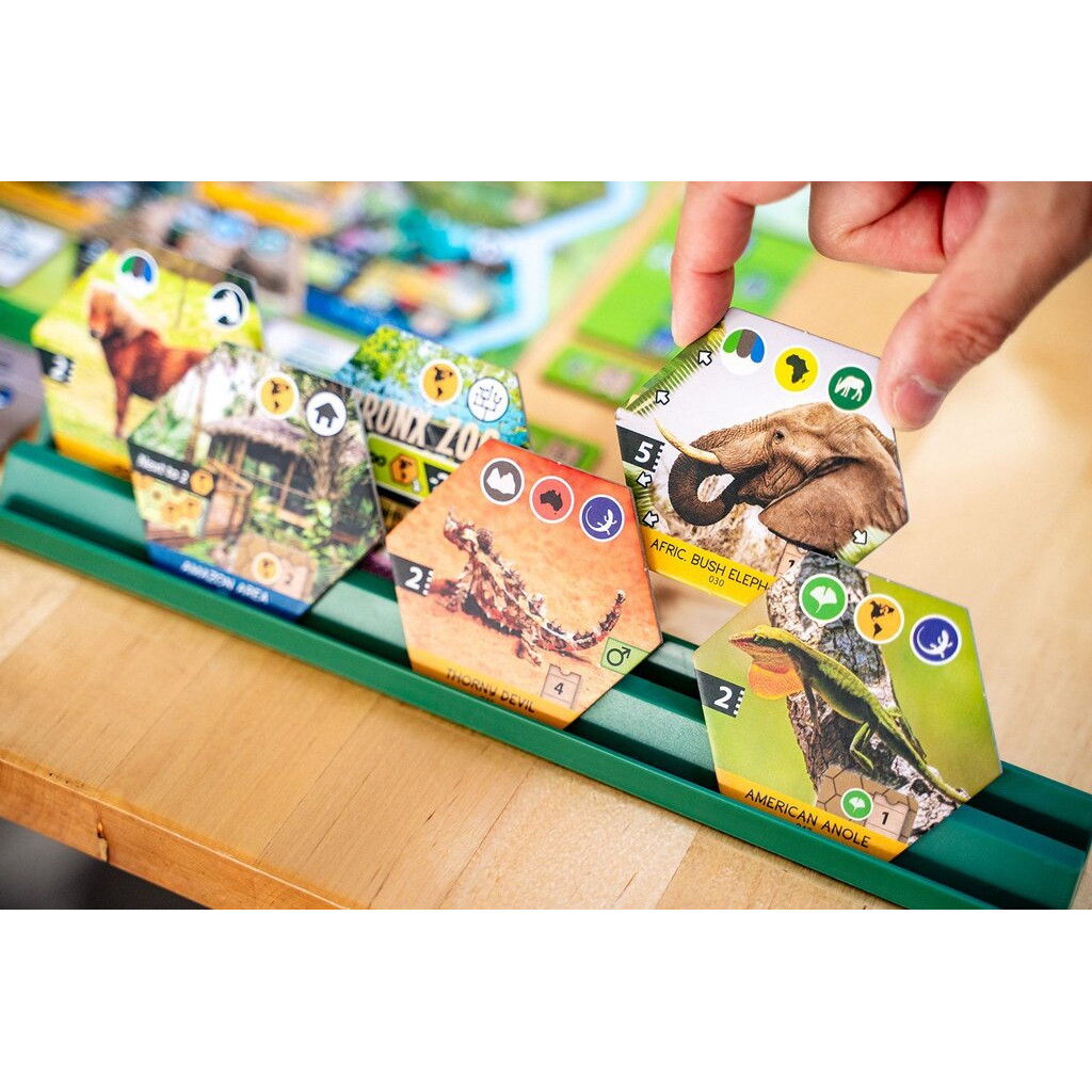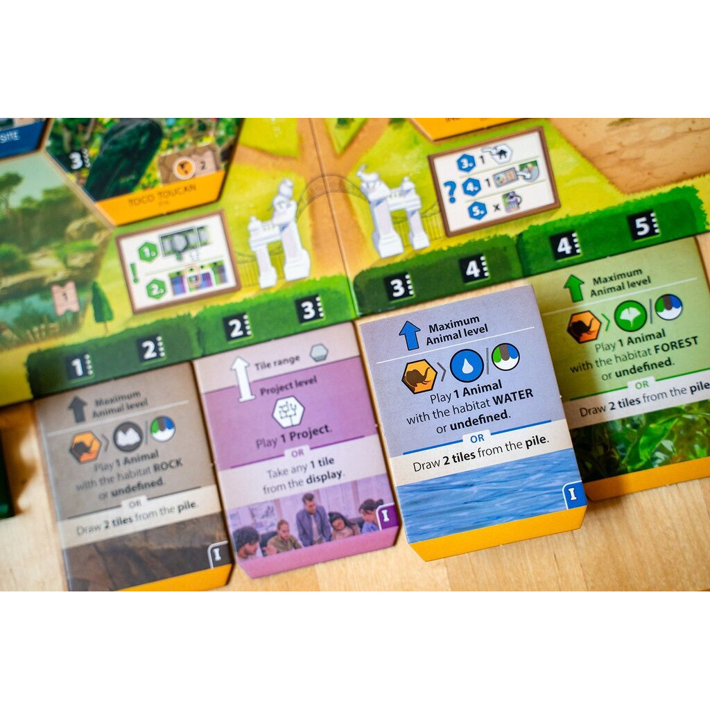 In Sanctuary, you are building a modern, scientifically managed zoo for animals and visitors. To do so, you have 135 unique zoo tiles at your disposal, consisting of animals, buildings, and projects. In each game, you try to place the best mix of tiles on your zoo map from the available options. Different tile effects allow you to achieve your conservation goals and make your zoo more attractive to visitors.