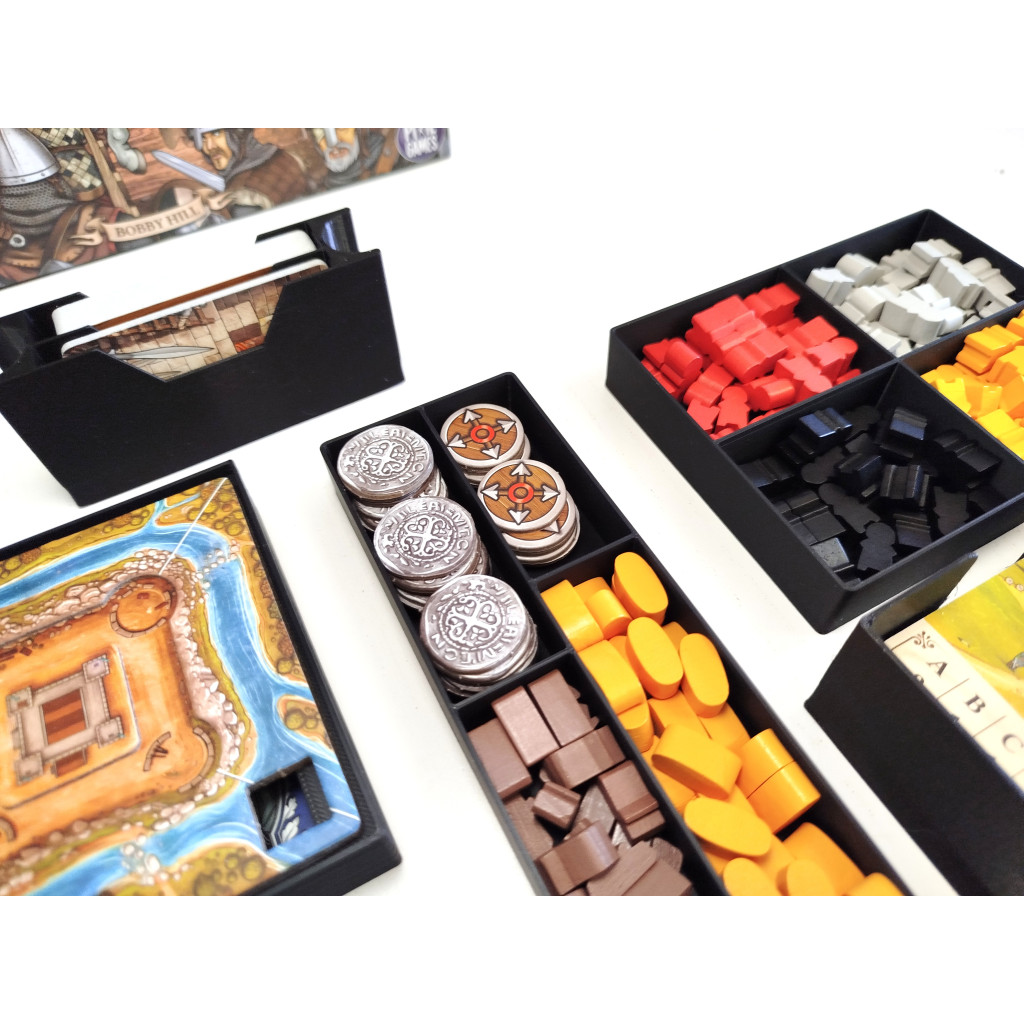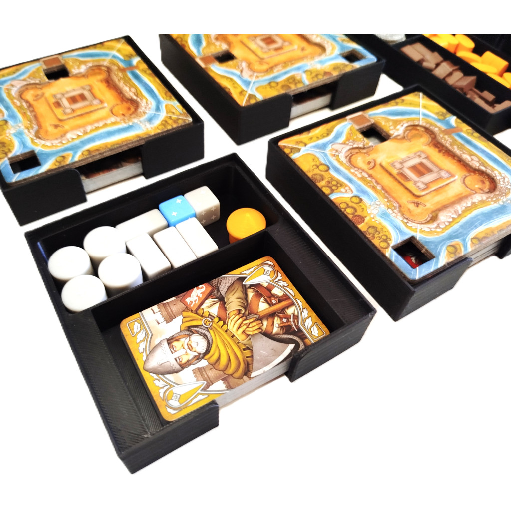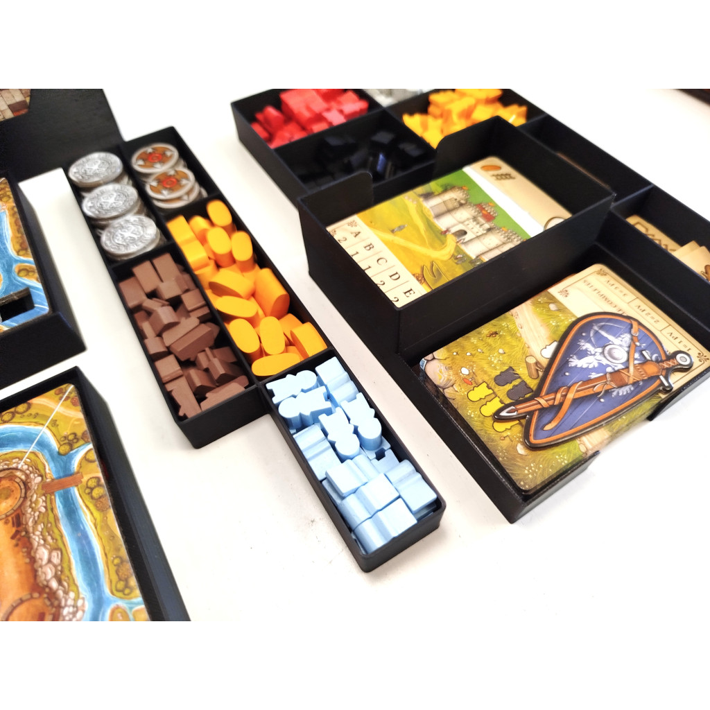 Specially designed for the game Anarchy, this insert optimizes the storage of all the parts of the game: tiles, tokens and cards (with or without sleeves), all in a single box. Each compartment has been designed for quick and efficient installation.