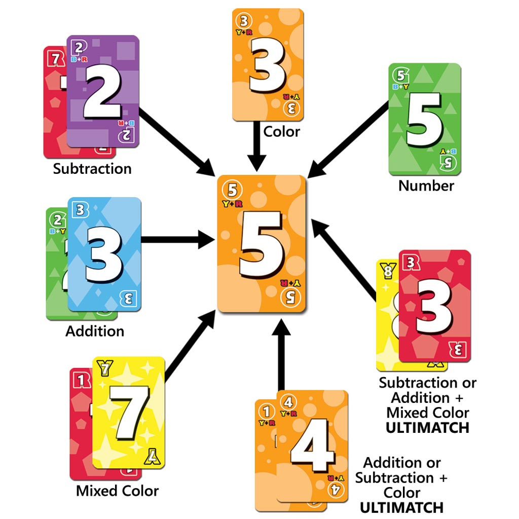 - CARD MATCHING: Match by number, color, or combine cards for mathematical solutions. Make the ultimate match of both number and color for bonus rewards and an extra thrill!