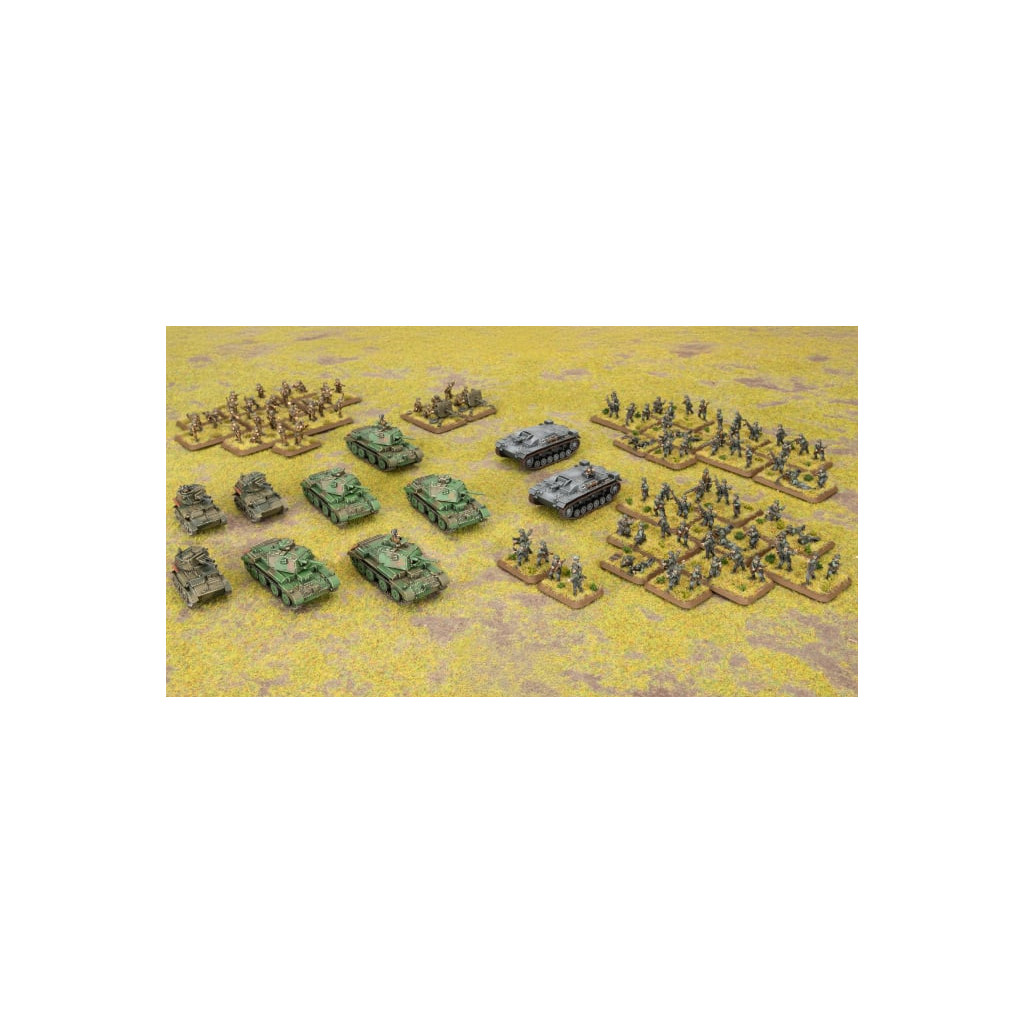 Both the British and Germans excelled in combined arms fighting, coordinating armour and infantry, with each arm bringing their complementary skills to the battle. In this set, you can command fast moving British Cruiser tanks and well-drilled riflemen against well-armoured German StuG assault guns and veteran infantry platoons.
