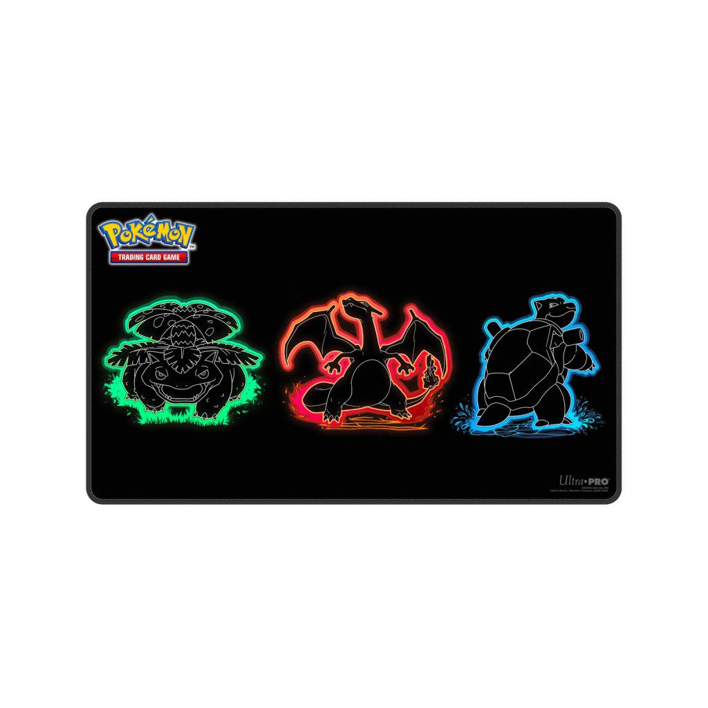 Officially licensed Pokémon Trading Card Game Foil Playmat featuring Venusaur, Charizard, and Blastoise.