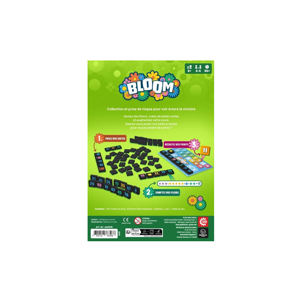 Assemble clever numerical sequences, steal tiles from your opponents, and optimize your moves to collect the most coveted tokens. The more flowers in your sequences, the more points you score.