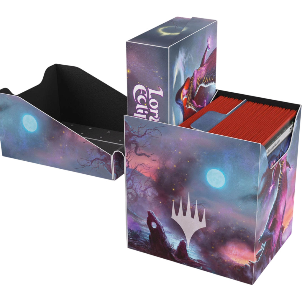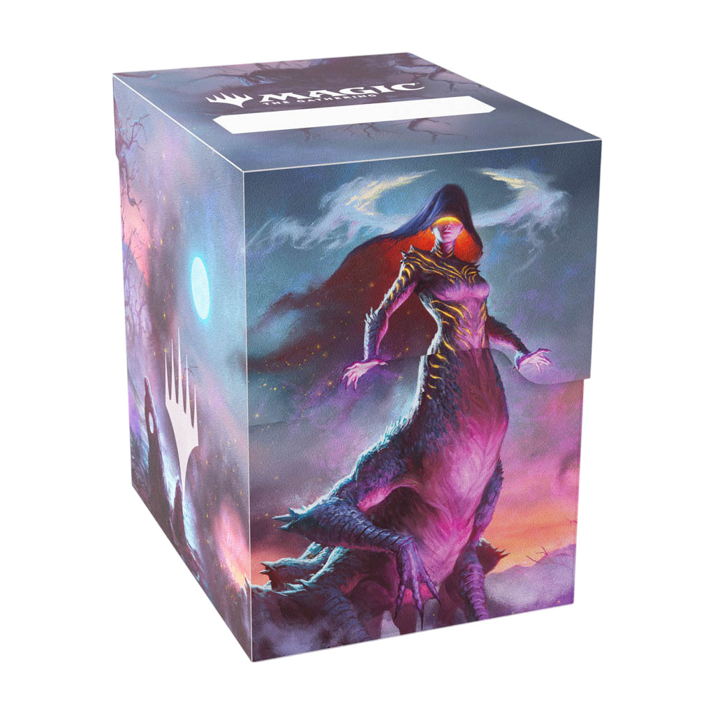 The Soft Crate is a durable all-in-one solution: the first 2-in-1 product that combines a full-size deck box with an integrated token box. This full-color printed deck box offers smart functionality and clever design. It holds up to 80 double-sleeved cards for standard formats, plus space for tokens and sideboard. Alternatively, it can fit up to 100 single-sleeved cards.