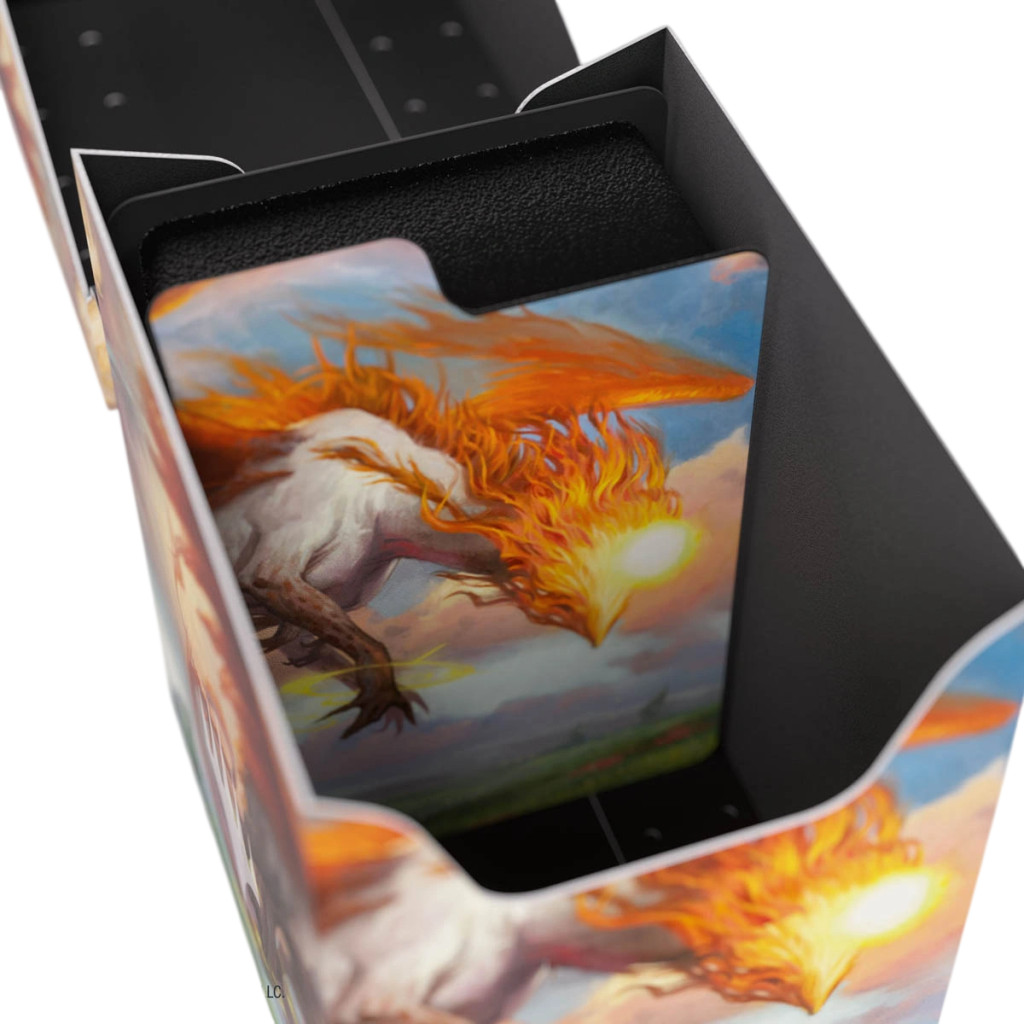 The ingenious Soft Dynacrate 100+ XL is a unique product on the market: It includes our successful Sizemorph Divider that perfectly adapts to the amount of cards inside the box. This makes it perfect for players who want to store standard size decks with token cards and sideboard, OR players with a double-sleeved Commander deck of 100 cards. On top of that, the Soft Dynacrate 100+ XL has an innovative self-lock mechanism, keeping cards securly locked in during transportation. It is fully printed with vibrant, officially licensed artwork from the game.