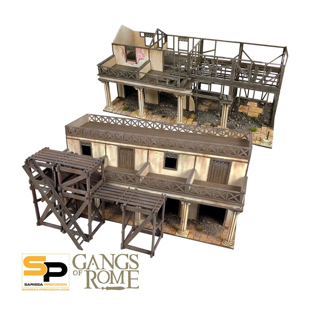 Scale scaffolds and half‑built insulae in this elevated terrain set—creating dramatic verticality and tactical opportunities. Perfect for *Gangs of Rome*, SPQR, or any urban skirmish where control of high ground matters.