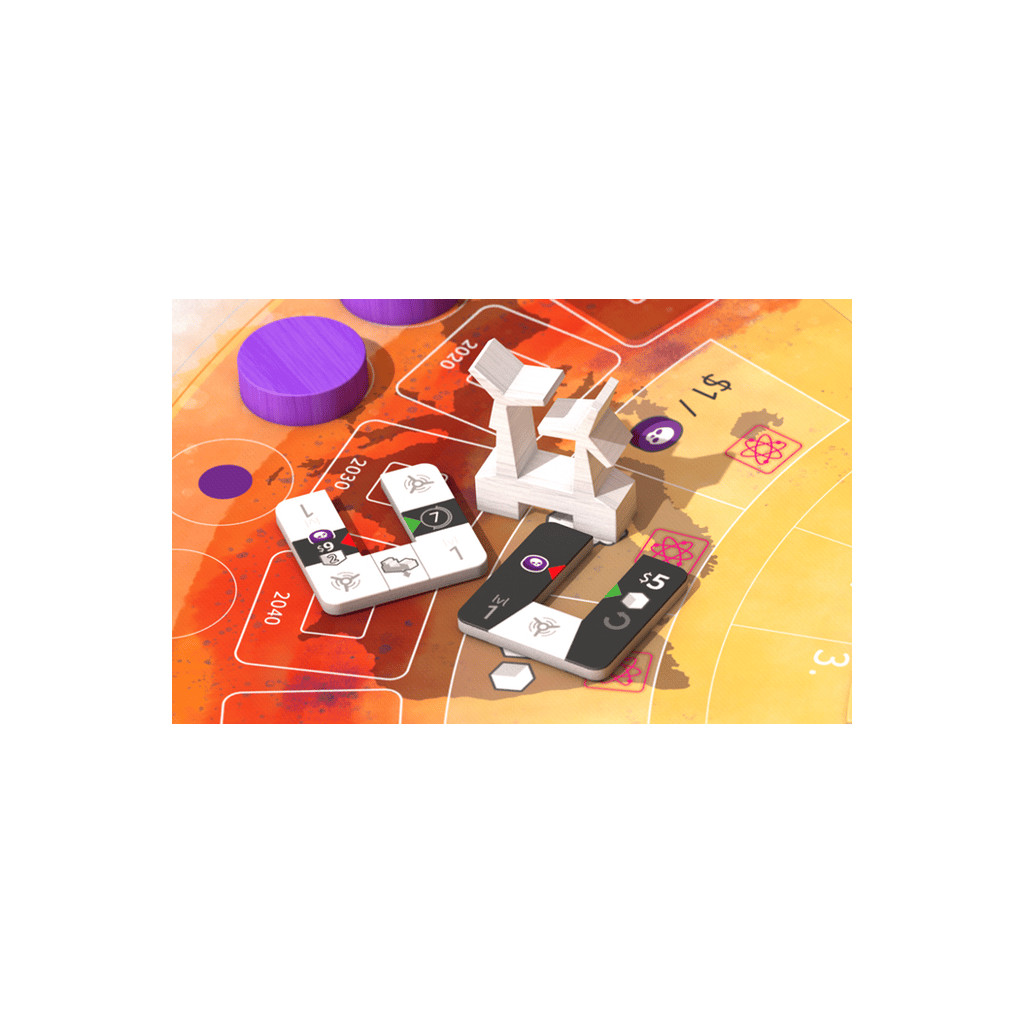 CO2: Second Chance revises and enriches of the original competitive game CO2 published in 2012 and also includes a brand-new cooperative game, in which the players have to collaborate to save the world, losing victory points each turn that they don't achieve their goals.