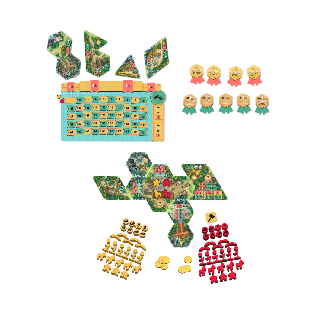 The placement of the tiles organically creates interconnected paths that villagers use to transport resources throughout the village. This leads players to build boards where no two games will ever be alike. Because the buildings are common, it also creates a fluid economy, where players are always working hard to provide the village with the resources it needs most.