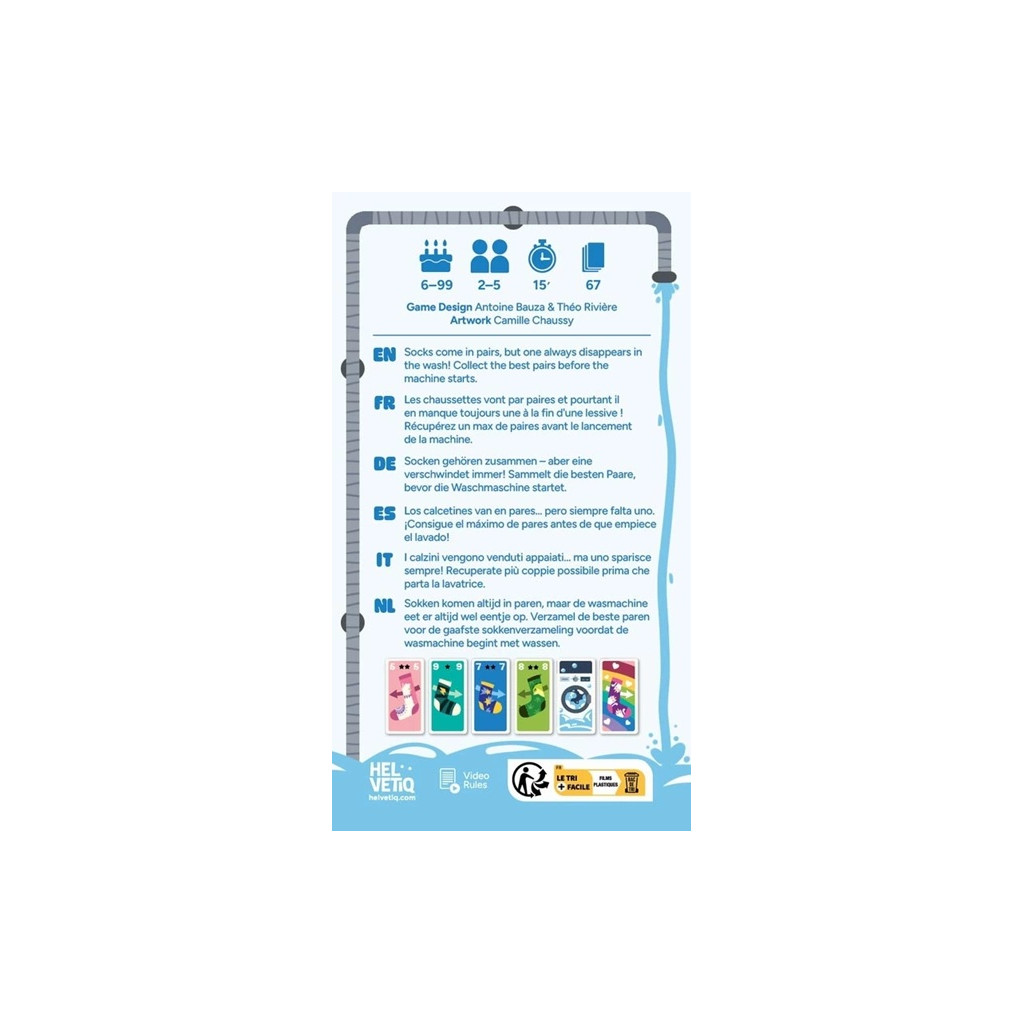 Only correctly matched pairs of socks will earn you points, so plan your moves carefully before the washing machine card ends the game!