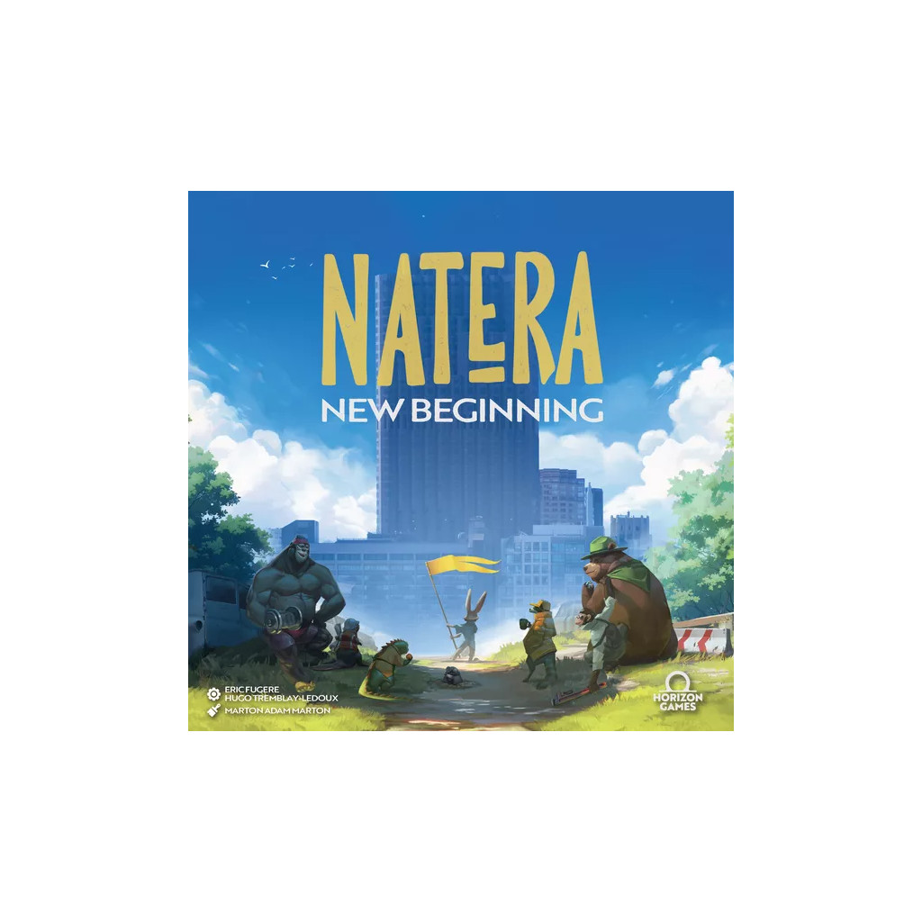 Tribes of sentient animals explore and take control of a post-human world. With the help of your unique tribe leader and explorers, you will explore, establish your authority, and take control of four distinct areas. This will allow you to unlock new, more powerful tiles and establish colonies to further consolidate your presence. Improvements made by human science will unlock powerful bonuses in a technology tree. By accumulating the most adventure points after four seasons, you will prove that your animal tribe is the one that has best adapted to the new natural era. The game includes over 150 basic and advanced exploration cards featuring discoveries, upgrades, scientific advances, and forty unique specialized cards, allowing each animal tribe to navigate and explore different strategies each game.