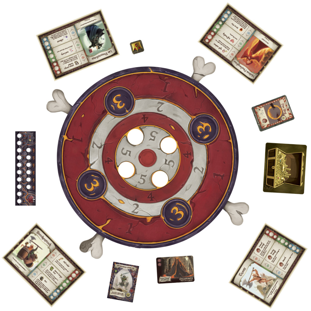In the Chambers of Malevolent Magma our heroes venture into the depths of an underground volcano, where they’ll have to keep their cool among the flames. Featuring quirky-bouncing d8 dice and an all-new target board for an unprecedented Dungeon Fighter experience!