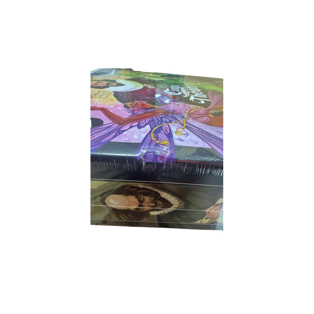 All the world's a stage in Unmatched: Slings and Arrows, while the Globe Theater is a battlefield. William Shakespeare steps up to the fight along with three of his wondrous characters: The Wayward Sisters, Hamlet, and Titania. Shakespeare's deck, designed by Jonathan Guberman, was one of the winning decks in a 2020 design competition, and it rewards players for completing lines in iambic pentameter. The Wayward Sisters, a runner-up in that competition from Jason Hager, is a multi-hero deck that challenges you to bring the witches' potion machinations to life with cunning co-ordination.