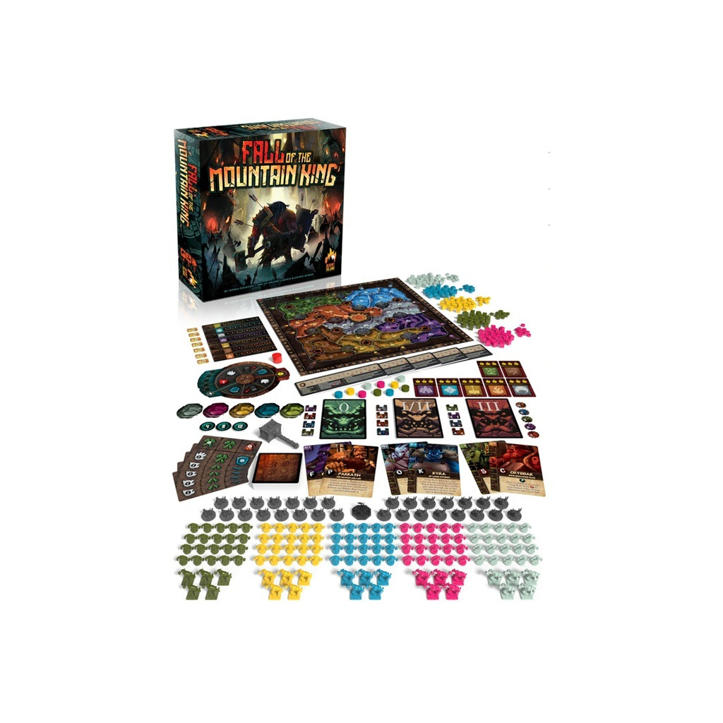 The game is played in three rounds called waves. At the beginning of each wave, you improve your ancestry, a set of symbols that determine your abilities. On each of your turns, you perform actions to place your trolls in the caves (facing your rivals and fighting gnomes) as well as to add trolls to the board, manipulate gnomes, and influence powerful champions to join your faction.