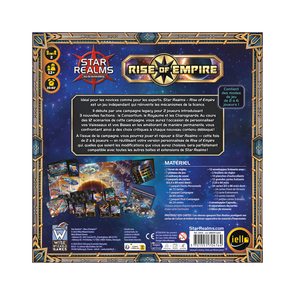 Star Realms: Rise of Empire takes the beloved Star Realms universe to new heights with its standalone prequel, offering a rich and immersive experience for both new players and seasoned veterans. This game is a must-have for fans who are ready to embark on an epic 12-scenario campaign where every decision shapes the future of your galaxy. Throughout the 12 scenarios, you will face off against opponents, unlocking powerful abilities, and making permanent changes to the market deck. The result? A dynamic and evolving game that you can play and replay, with each session offering fresh challenges and strategies.