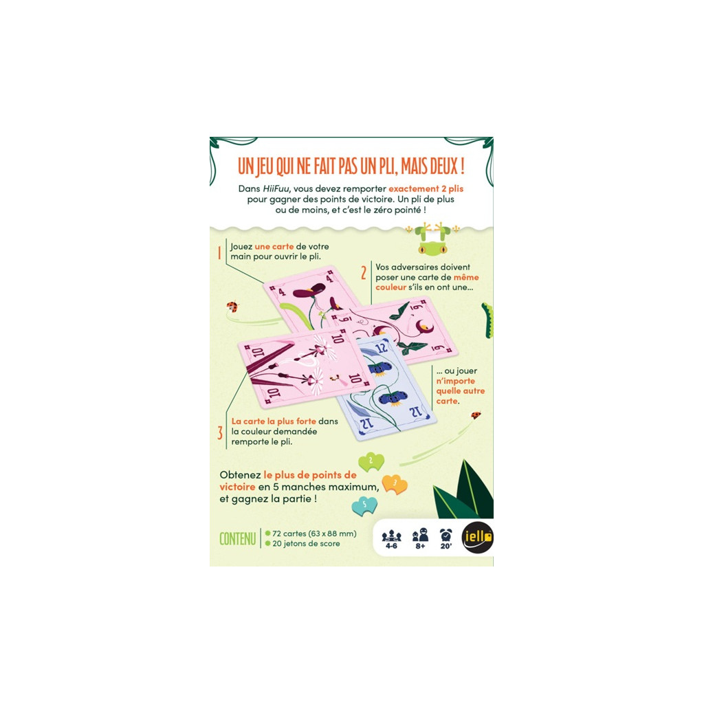 The rounds follow each other in quick succession (5 maximum), with the pressure constantly mounting. The progressive scoring token system rewards players who know how to manage their tempo. Suitable for ages 8 and up, Hii Fuu is perfect for family or friends.