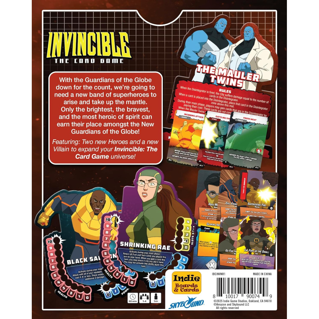 An expansion for Invincible which includes two new heroes (Shrinking Rae and Black Samson), a new villain (The Mauler Twins), new player cards, a new city, and more.