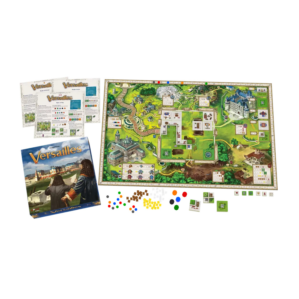 Versailles is a board game in which 2 to 5 players take on the role of architects and decorators working together to build the Palace of Versailles, while competing for the favor of the King, Louis XIV.