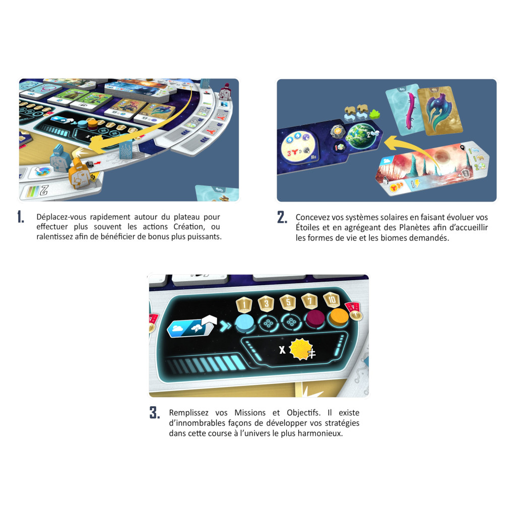 You will build solar systems with stars, planets, and asteroids, then fill them with life by playing cards. You can also acquire various special abilities by adding biomes and upgrading your console.