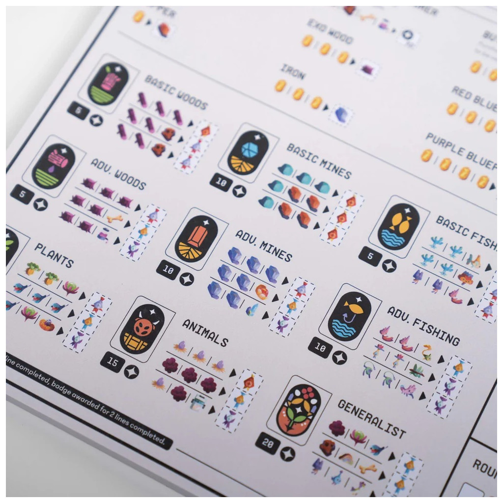 Players earn victory points by collecting badges, achieving seasonal goals, being the best neighbor, and filling their cargo manifest with goods to send back to Zenith HQ. At the end, the player with the most victory points wins the game!