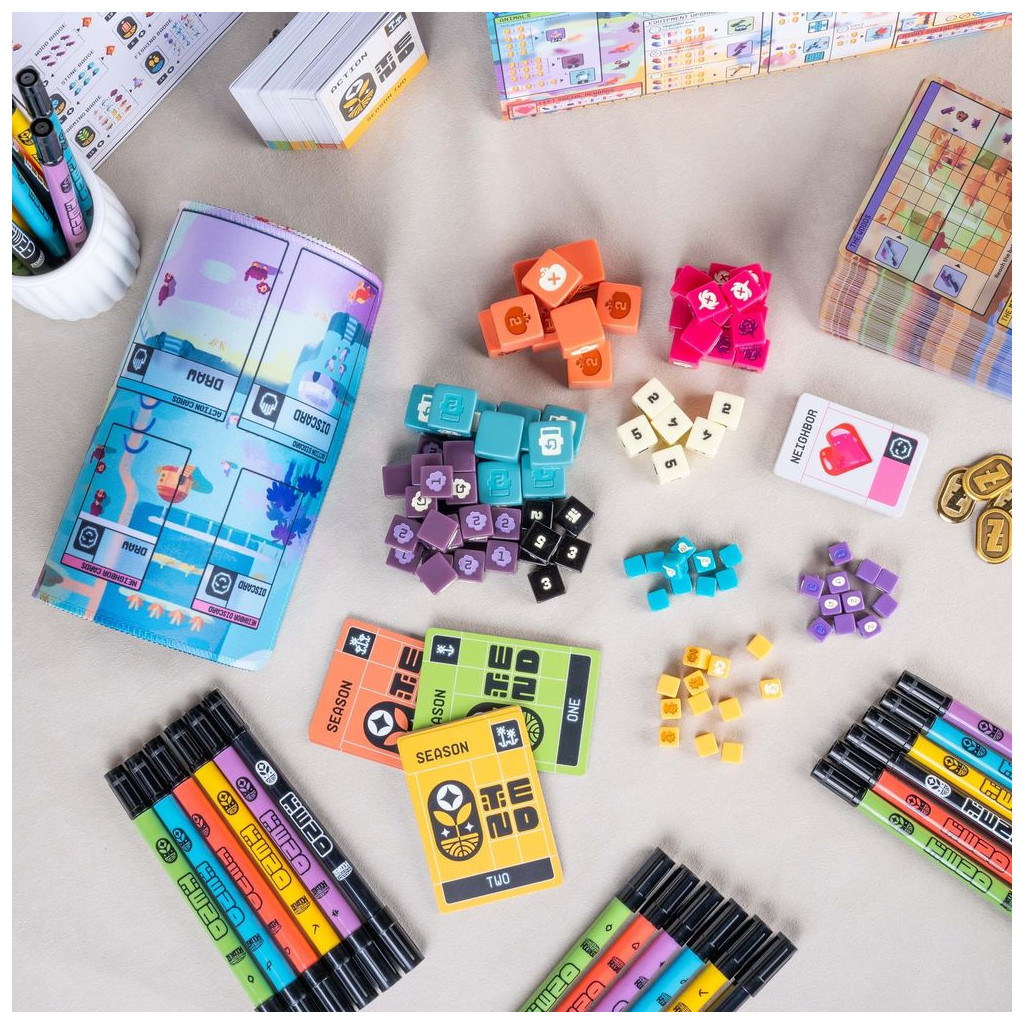Players earn victory points by collecting badges, achieving seasonal goals, being the best neighbor, and filling their cargo manifest with goods to send back to Zenith HQ. In the end, the player with the most victory points wins the game!