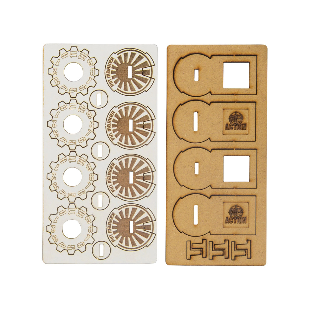 Pins are a key mechanic in Bolt Action, and you need to be able to track them for all of your units. Each one of these markers lets you track a unit’s pins, from 0 to 11, and store their Order Die securely at the same time, leaving your table uncluttered and your units’ status clear!