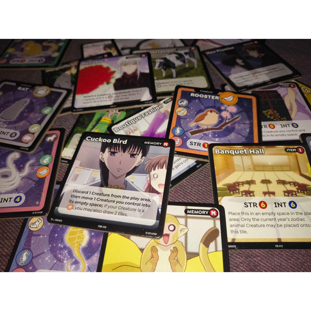 The banquet continues! In Fruits Basket Starter Set 2, new members of the Soma family join the fray, bringing fresh personalities, powers, and complications to the cursed zodiac tale. As emotional ties deepen and rivalries emerge, your challenge is to guide your chosen characters through strategic confrontations and clever tile plays all while assembling the full zodiac before your opponent does.