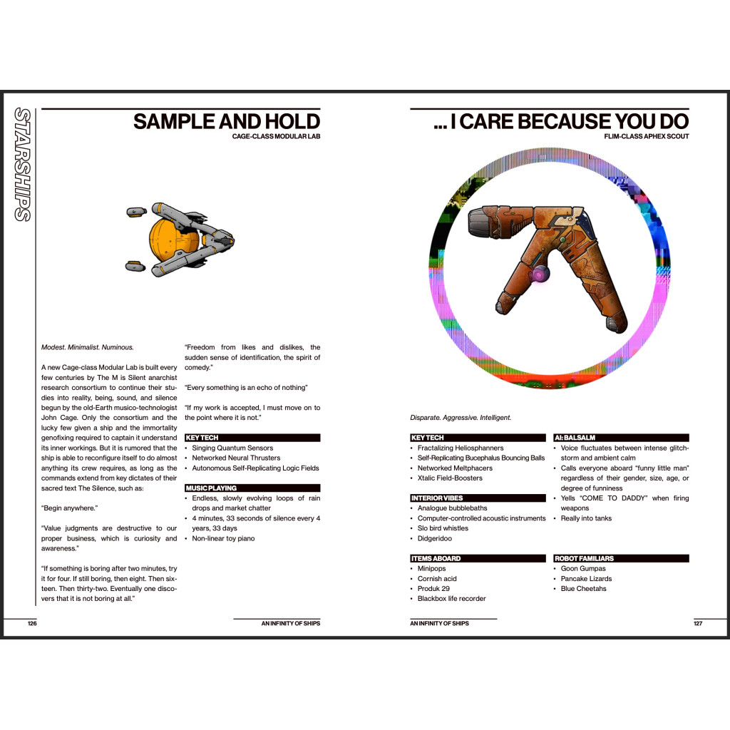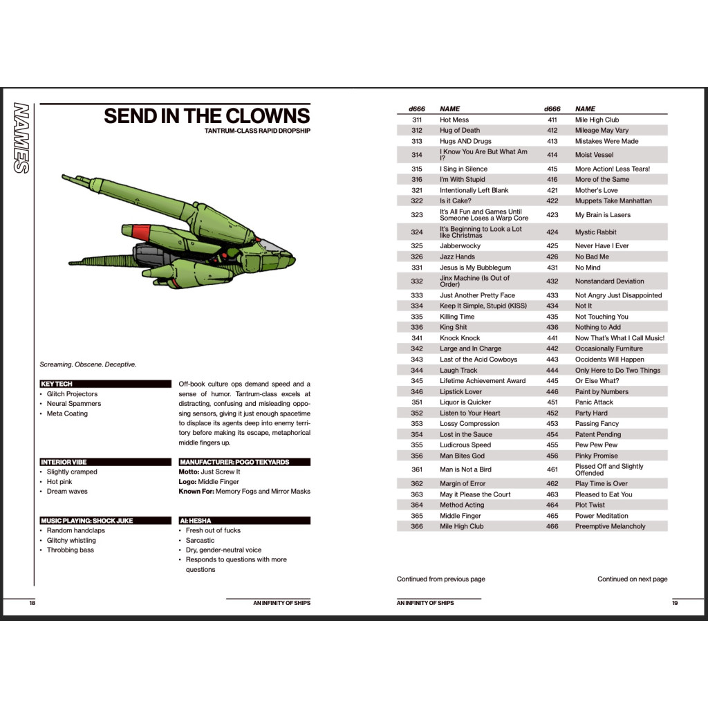 - TABLES! covering everything from ship names and classes, to experimental tech, AI personalities, far-future music genres, and strange robot crews