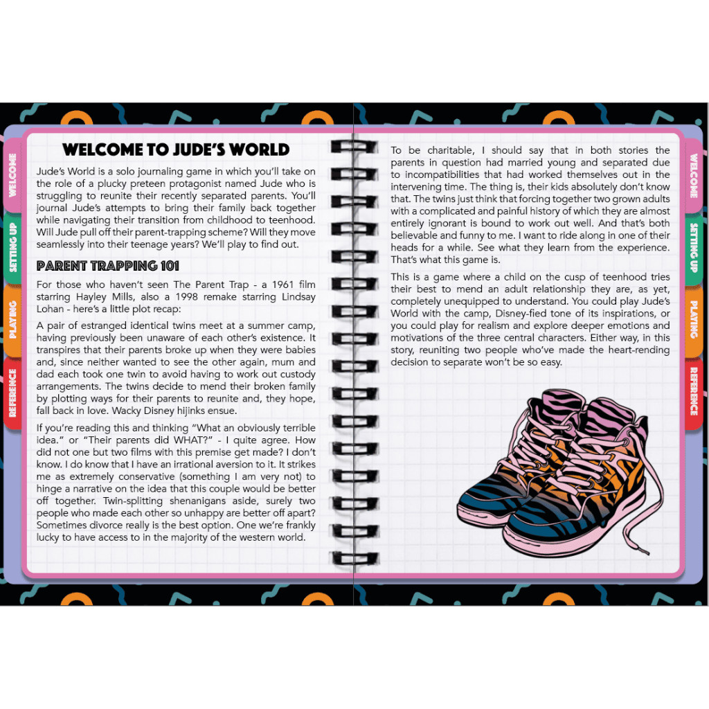 Jude’s World is a solo, tarot-based journaling game in which a precocious preteen struggles to reunite their estranged parents.