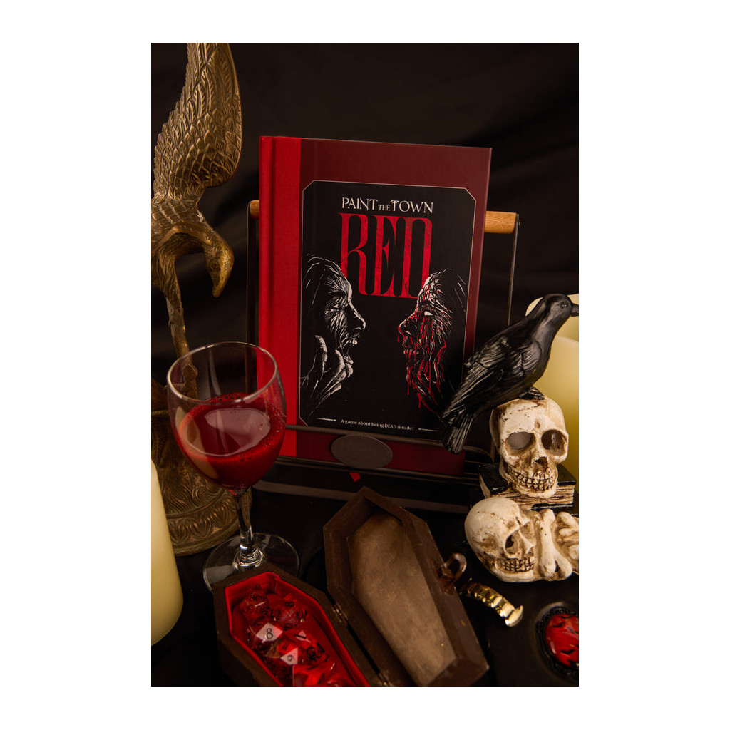 Paint The Town Red is a sad vampire RPG from SoulMuppet Publishing, created by Zachary Cox (Orbital Blues, Inevitable, Best Left Buried) and with art direction from Johan Nohr (MÖRK BORG, CY_BORG, Into The Odd). This is a game about depression, partying and falling in love, and explores themes of trauma, vice and loneliness.