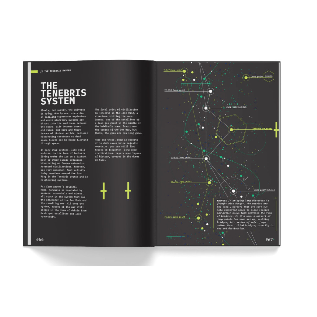 Engage in power struggles and build your crew’s reputation. Salvage and steal to endure a ruthless universe. And above all, do anything you can to get that next job. Your life will depend on it.