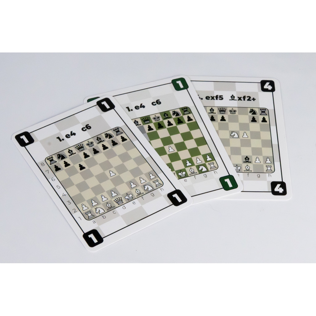 as well as summary cards for the 7 mates, 17 opening cards with their names, and an exclusive bonus card dedicated to the Vanoni Gambit, created by the game’s inventor.