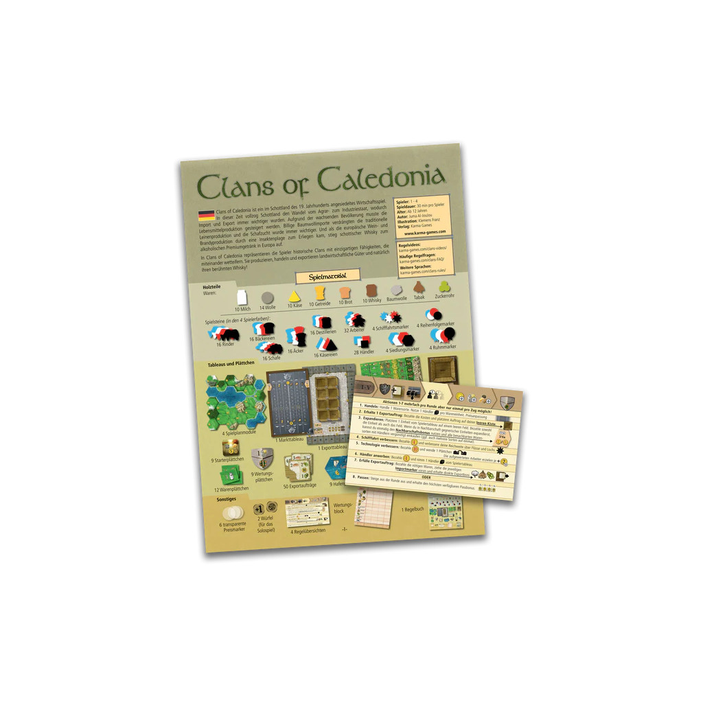 Printed rulebook and 4 player aids for Clans of Caledonia (base game) in your language.