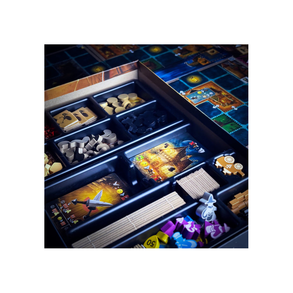 Thiefdom comes with a custom plastic insert that fits in all components and also sleeved cards.