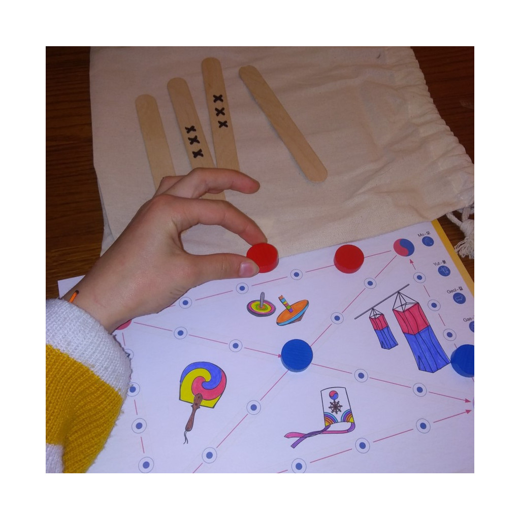 - A traditional board game from each country: Yut Nori, a course game very popular in South Korea, and Petteia a very old strategy game from Antic Greece (for 2 players).