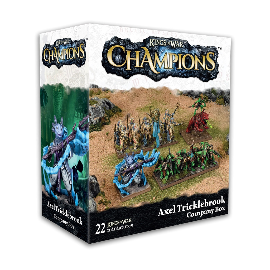 Axel Tricklebrook’s Company Box contains 22 Mantic Miniatures, and all the rules and instructions to field this Trident Realm Company in Kings of War Champions, the compact rank and flank miniatures game.